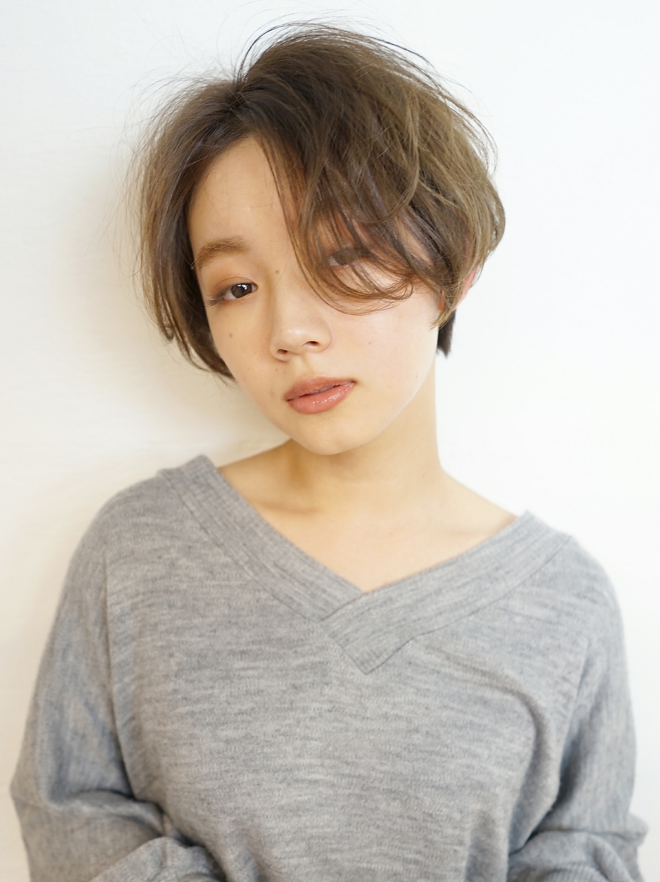 シースルーバング丸みショートボブ/ベージュカラー